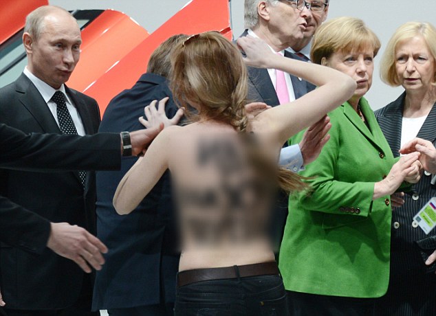 Presiden Rusia Vladimir Putin kelihatan terkejut kerana beliau berhadapan dengan kumpulan penunjuk perasaan topless wanita di Jerman semalam (8/4/13). Kejadian itu berlaku ketika Putin melawat pameran perdagangan di Hanover dengan Canselor Jerman Angela Merkel.